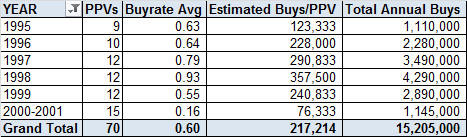 | The Undertaker | Â Â Â Â Â Â Â Â Â Â Â Â Â Â Â Â Â Â Â Â Â Â Â Â Â Â Â Â Â 7,050 | 175 |