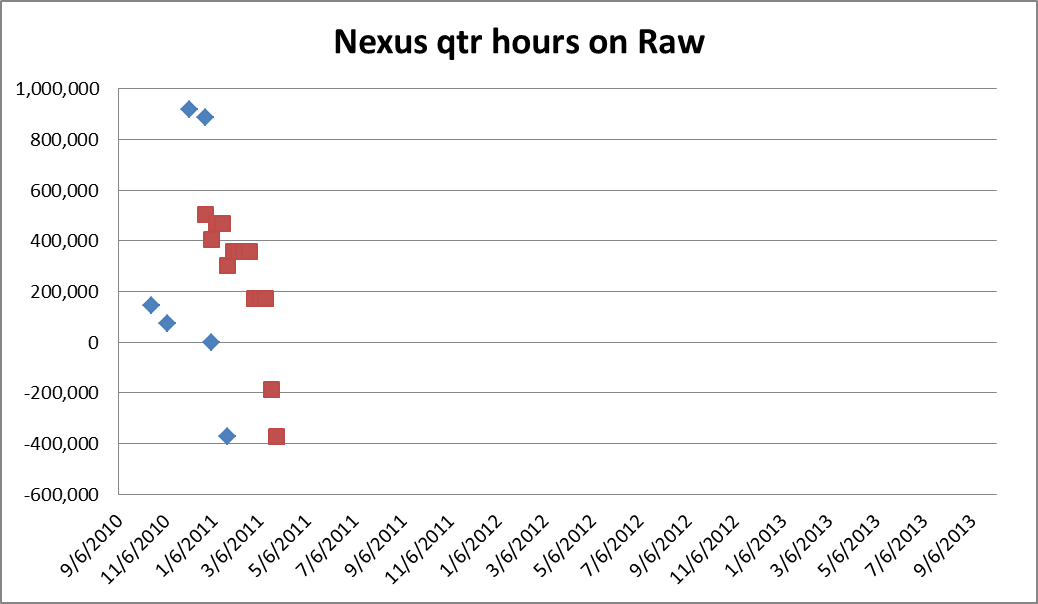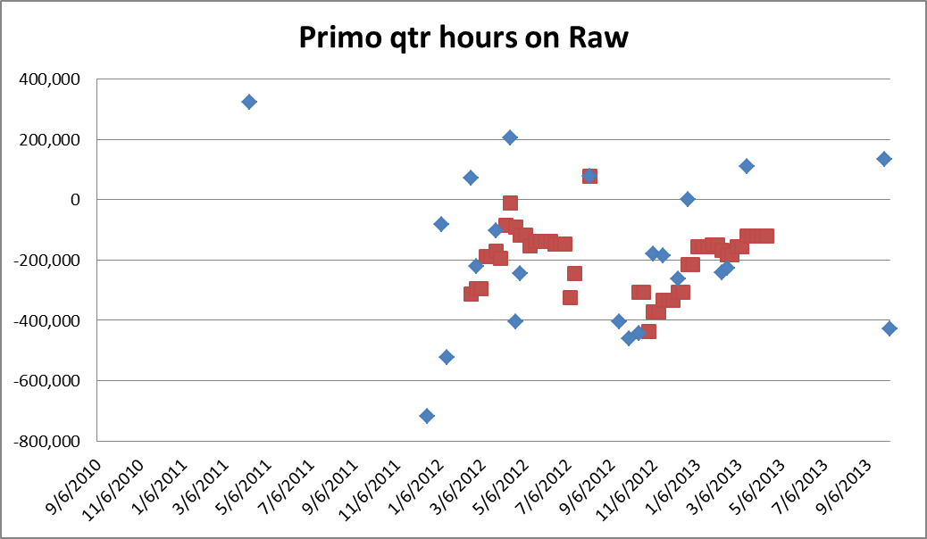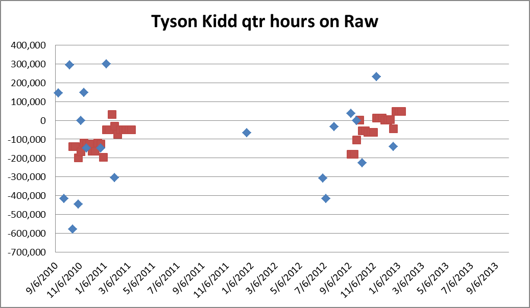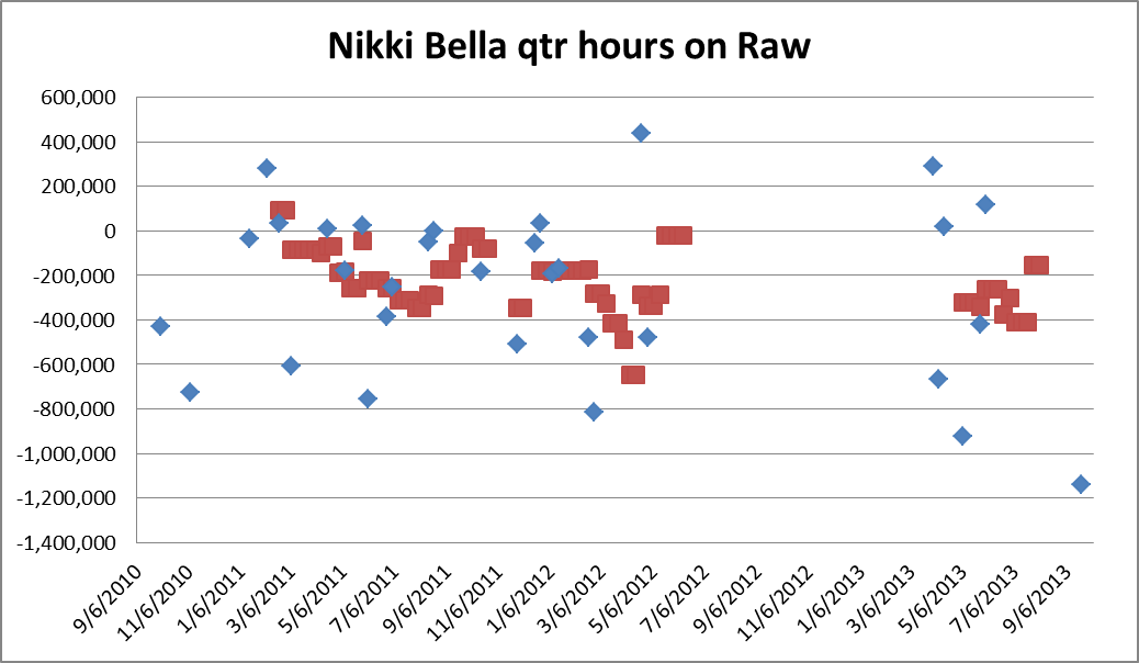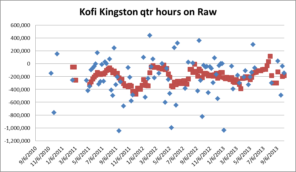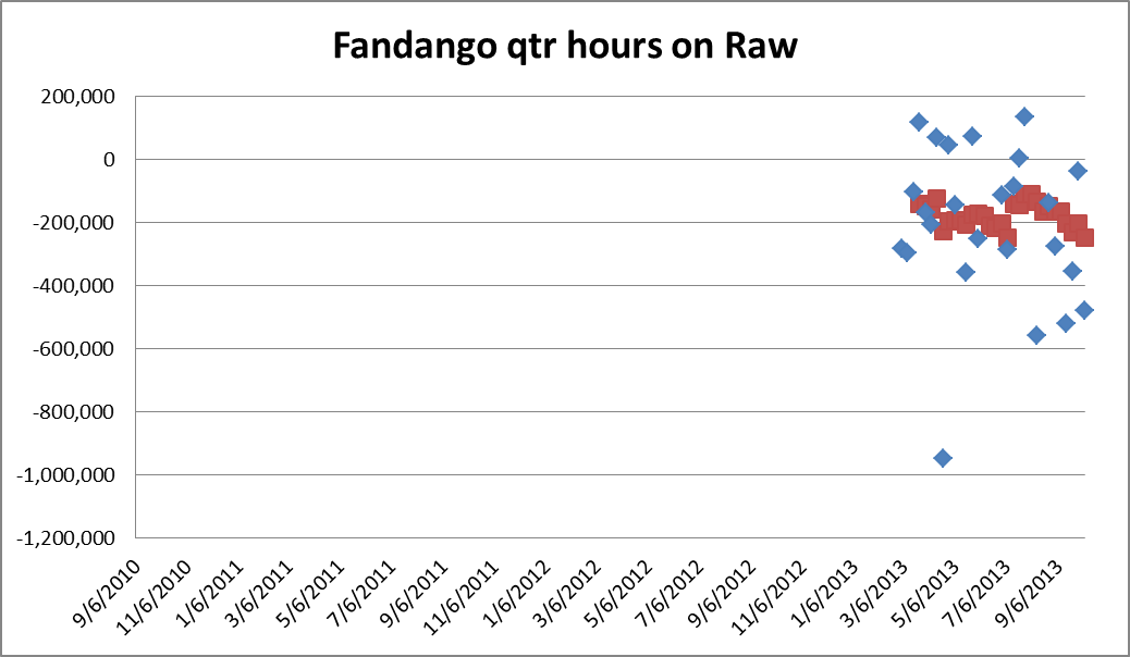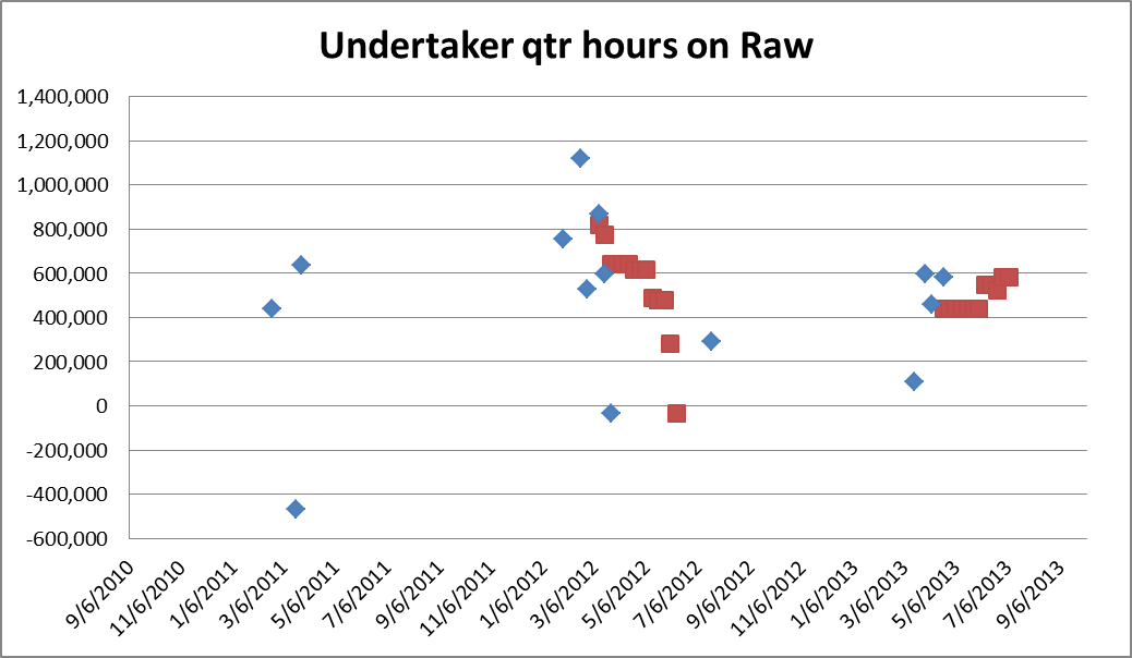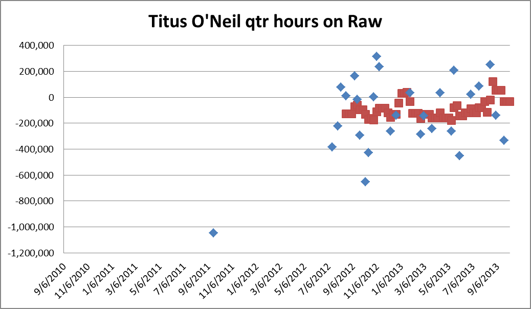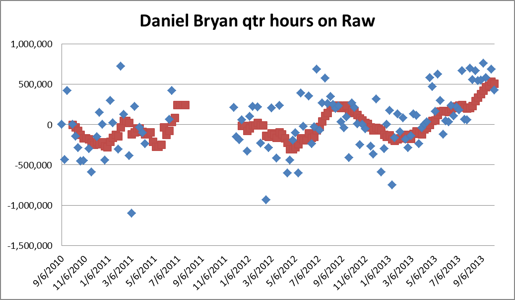 A lot of people have asked to see the data since Daniel Bryan’s start-stop push in August hoping to prove/disprove that he is/is not a draw/failure. I’ve looked at the numbers and honestly feel that our dataset is too constrained to really pull meaningful conclusions.